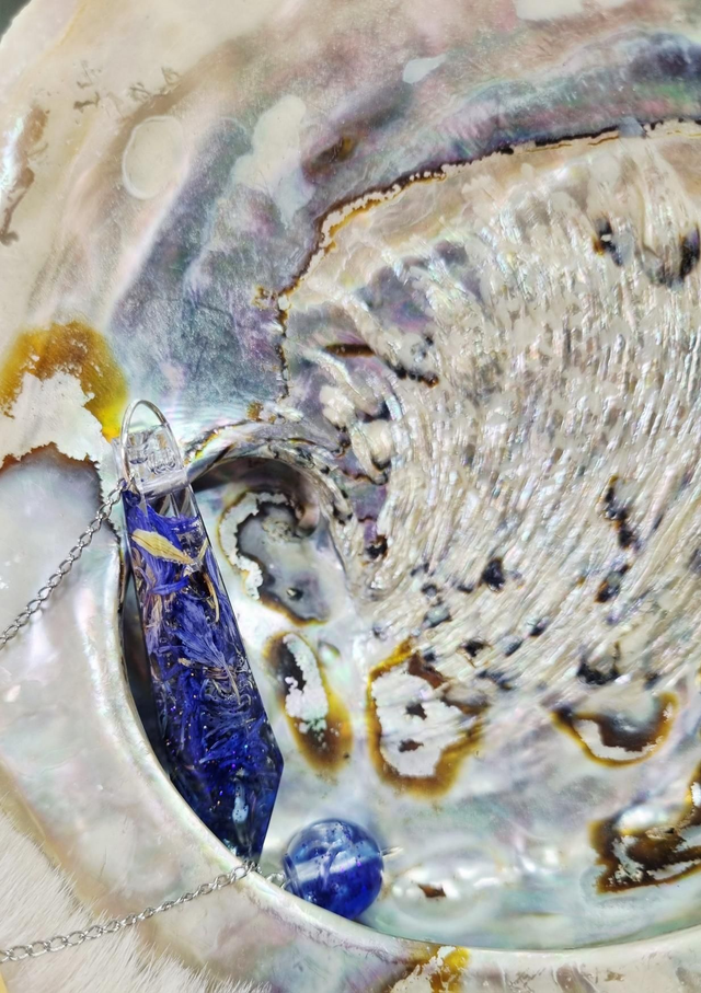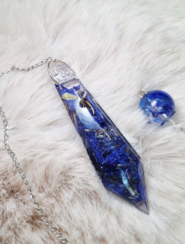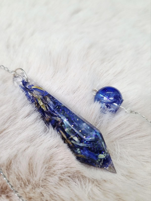 Pendule en résine UV-LED contenant du bleuet et de l'encre bleue