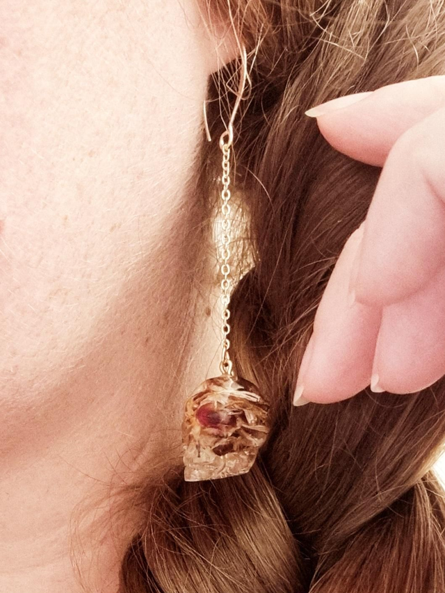 Les crochets d'oreilles sont en laiton plaqué or. Ils mesurent 24mm de haut.